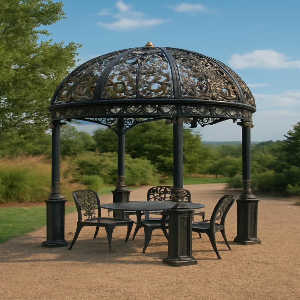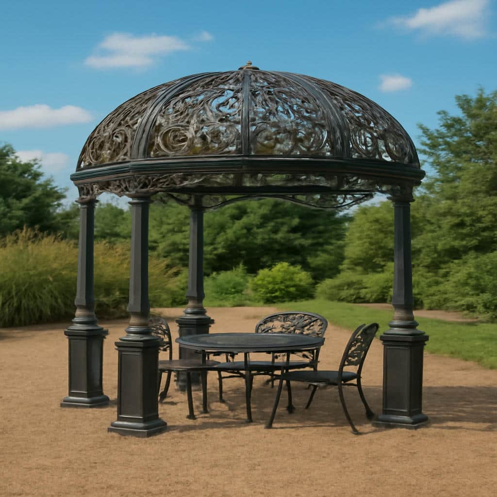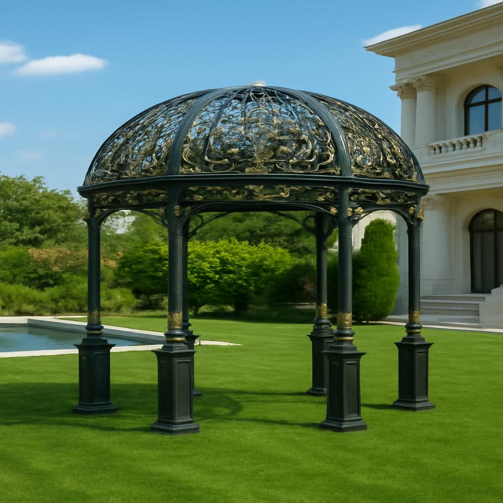 شامل ستون های فرفورژه, گنبد تزئینی, قاب فلزی مقاوم و پایه های تقویت شده برای نصب ایمن است. |