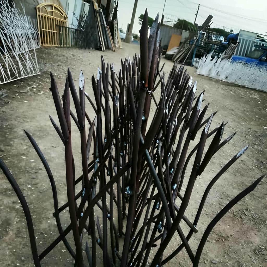 در میان انواع حفاظ های موجود, مدل شاخ گوزنی برای دیوار آپارتمان بیشترین محبوبیت را دارد. این نوع حفاظ با شاخه های درهم تنیده و نوک تیز خود مانع از هرگونه عبور غیرمجاز می شود. ضخامت میلگردهای مورد استفاده معمولاً بین 8 تا 10 میلی متر است و تراکم شاخه ها از 30 تا 45 عدد در هر متر متغیر می باشد. علاوه بر این, رنگ الکترواستاتیک با پوشش ضدزنگ, طول عمر سازه را افزایش می دهد. قیمت حدودی هر متر از این مدل بین 320/000 تا 1/960/000 تومان است. قیمت تقریبی = متراژ × نرخ پایه × ضریب متریال. به همین دلیل, انتخاب تراکم مناسب و کیفیت جوش در قیمت و دوام نهایی بسیار مؤثر است. نصب آن روی دیوارهای آجری یا سیمانی با استفاده از شاسی فلزی انجام می شود و خدمات پس از فروش شامل ترمیم رنگ و بررسی جوش ها تا 5 سال می باشد. سطر شواهد: در پروژه ای مسکونی با متراژ 80 متر, استفاده از تراکم 40 شاخه امنیت را تا 95 درصد افزایش داد.