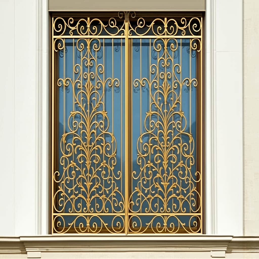 پوشش الکترواستاتیک و پتینه طلایی در حفاظ پنجره مدل اشرافی زرین