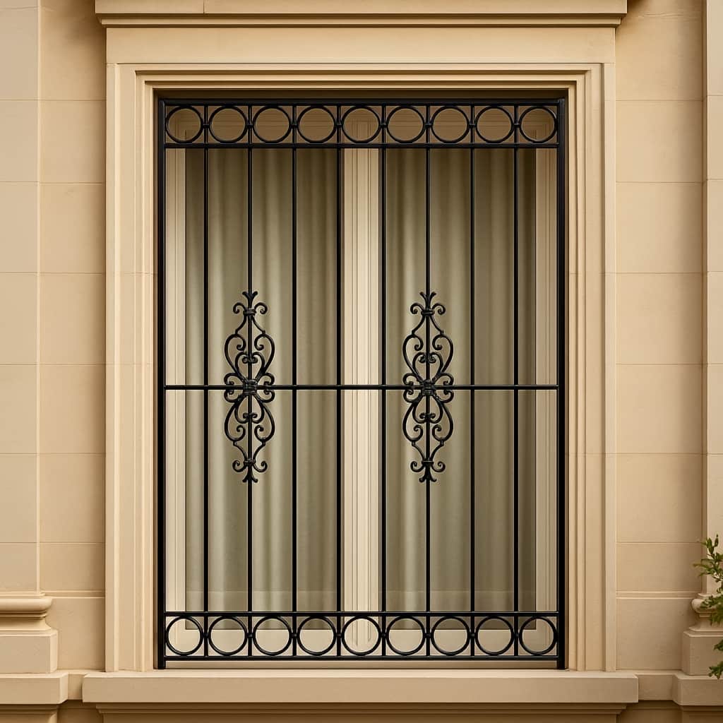 نکات کلیدی: حفاظ پنجره مدل نقشینه ترکیبی از هنر فرفورژه, ایمنی بالا و دوام است که برای نماهای کلاسیک و سنتی انتخابی ممتاز به شمار می آید.