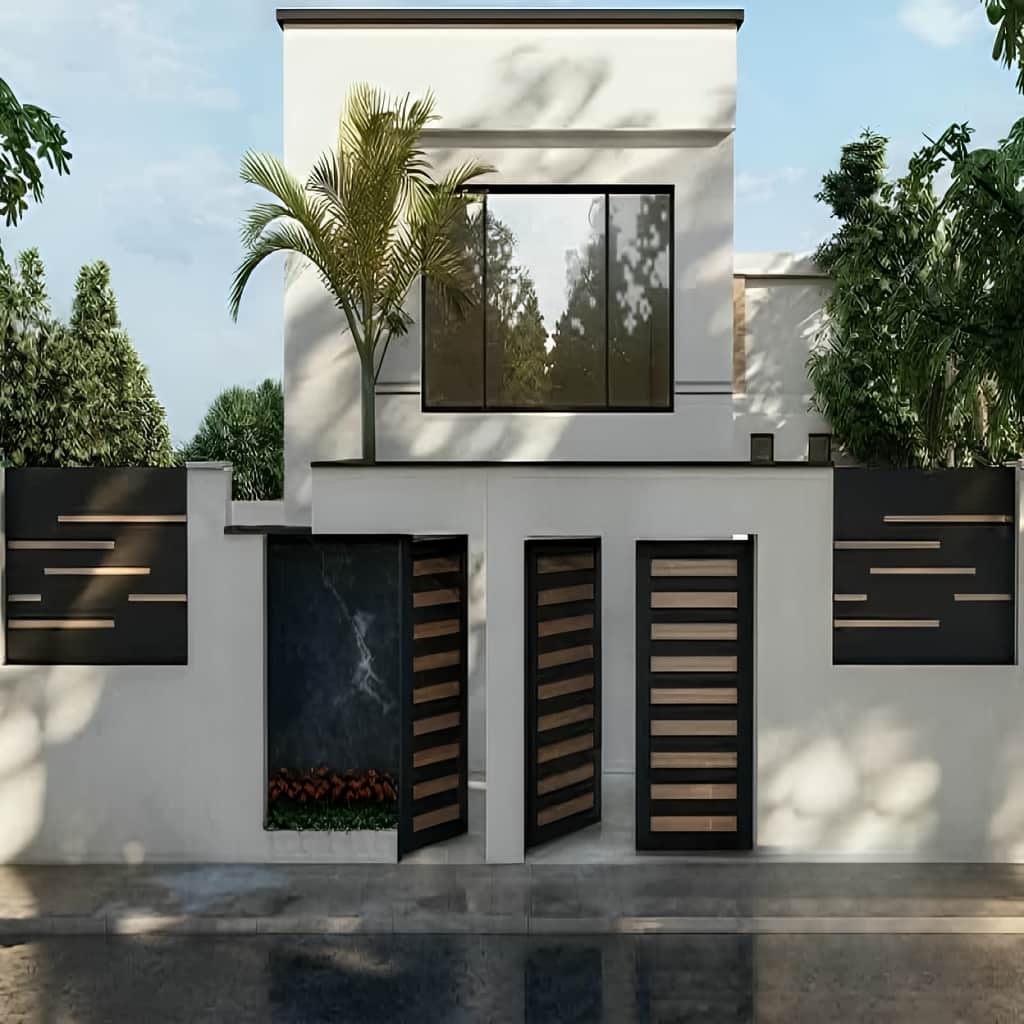 طراحی مینیمال با خطوط منظم و امکان ترکیب فلز و چوب برای ایجاد نمای گرم و مدرن. |
