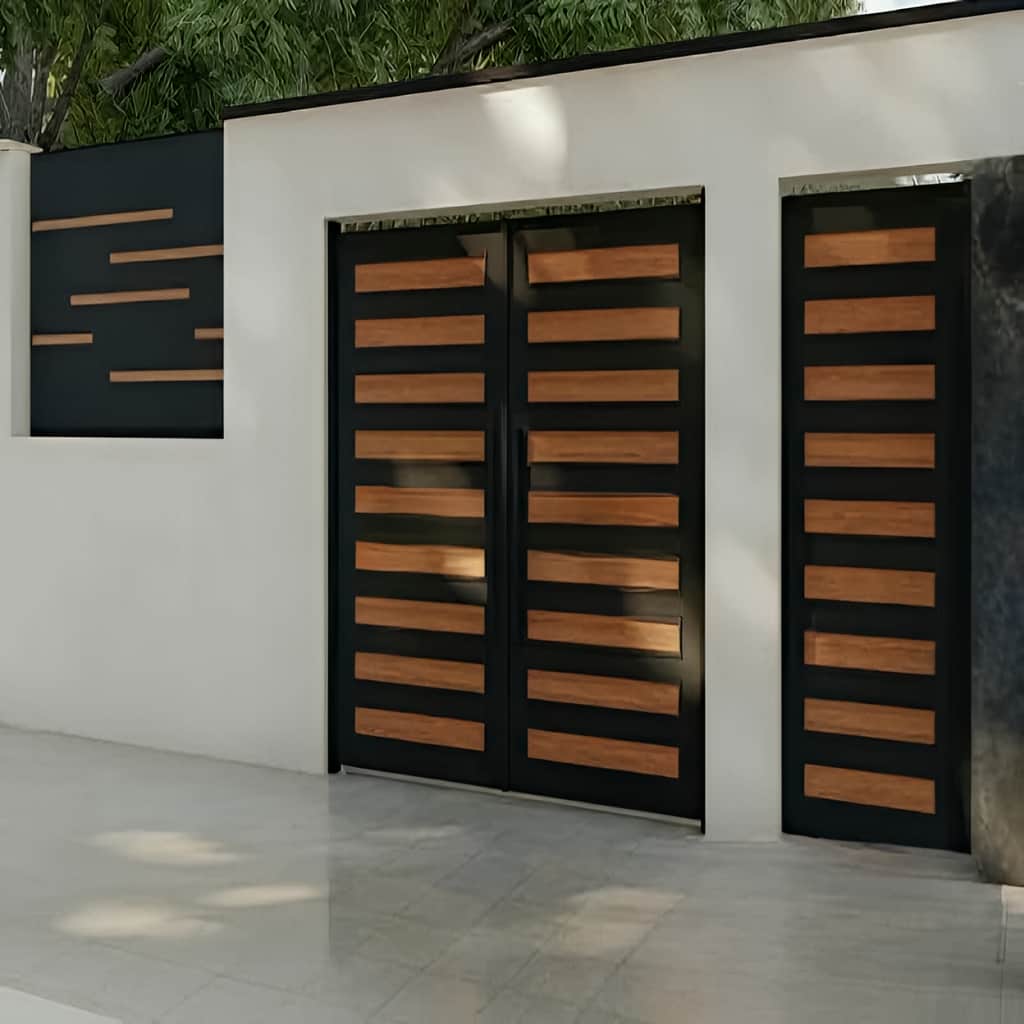 مناسب برای ورودی ویلا, مجتمع مسکونی و ساختمان های نئوکلاسیک با سبک طراحی ترکیبی چوب و فلز. |