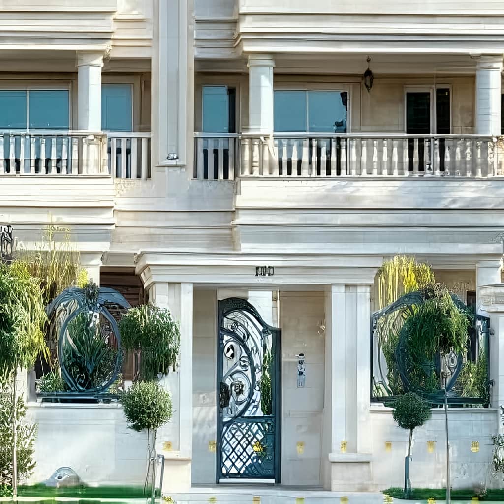 طراحی سه بعدی با دایره مرکزی برجسته و حلقه های فرفورژه تزئینی که زیبایی چشمگیر و هماهنگی با نمای لوکس ایجاد می کند. |