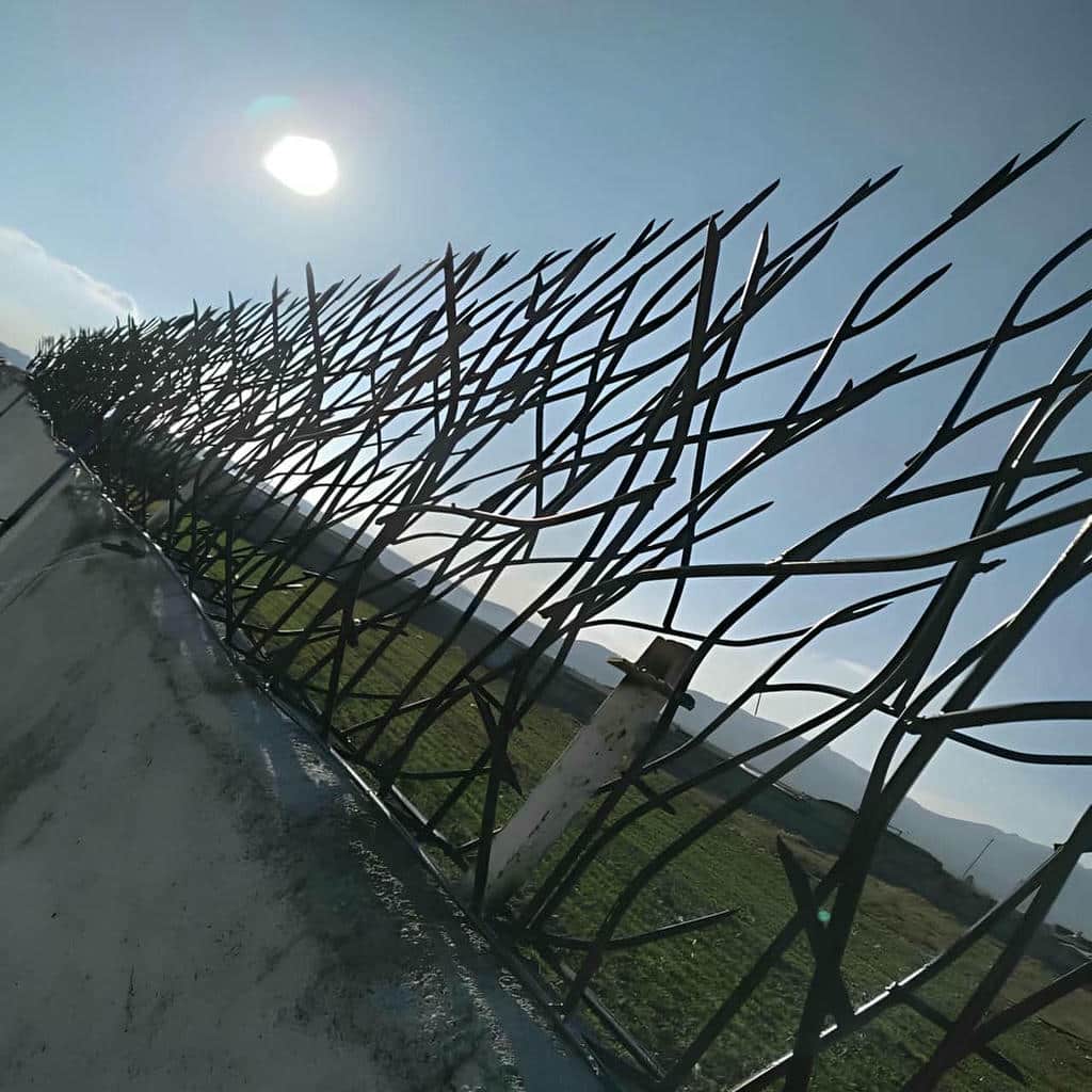 عرض معمولی این نوع حفاظ حدود 50 سانتی متر است و طراحی آن به گونه ای است که شاخه ها در زاویه ای خاص نصب می شوند تا امکان عبور از دیوار را به صفر برسانند. |