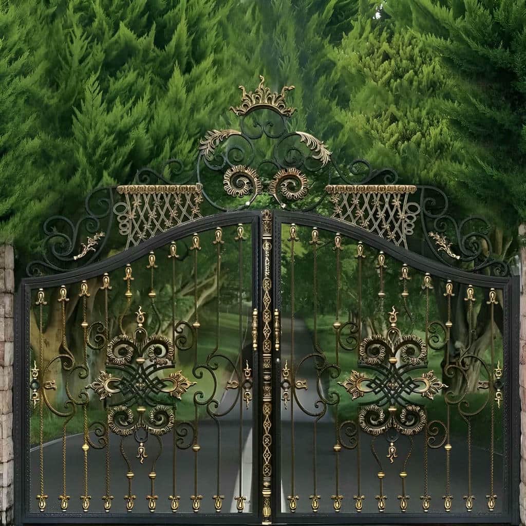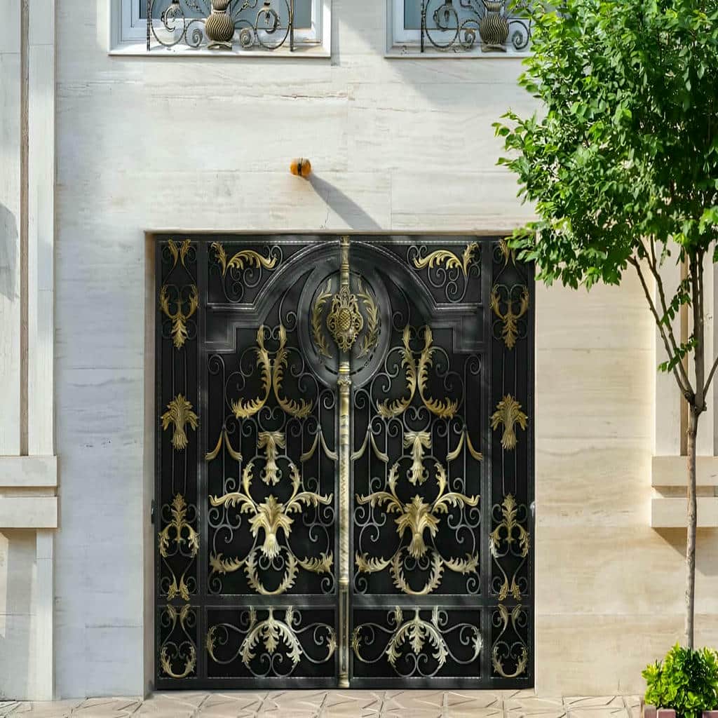 درب فلزی حیاط ویلایی با تزئینات فرفورژه کلاسیک